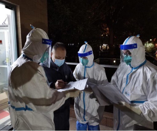 为了克服和老年居民交流的障碍,董浩专门学说了上海话,每天住在对口支援的小区居委会,跟随社区党群办的同志们下沉小区,挨家挨户开展核酸筛查、抗原检测,还为居民做好蔬菜分配供给,经常忙到凌晨。