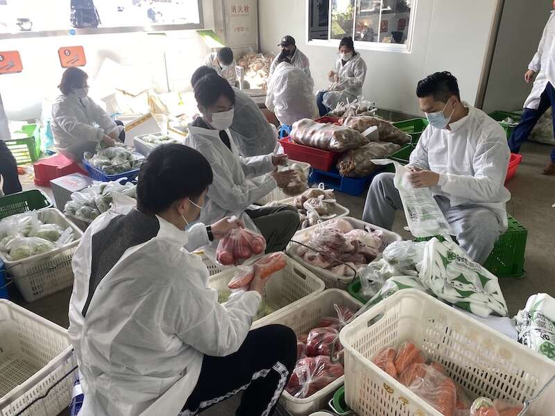 顾村镇位于上海市郊区,常住人口约24万人,镇里有较多大型居民区。青年志愿者领队陆旸告诉记者,当时,居民们通过政府向企业订购了1.5万份蔬菜、肉类等生活物资,远远超过了日常的订购量,卖家企业则因为不少员工处于管控区,来不及分装和运送。