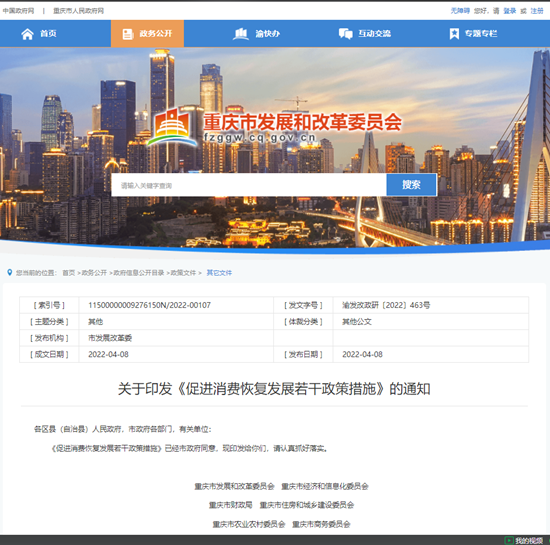 近日,重庆市发展改革委等八部门联合出台《促进消费恢复发展若干政策措施》,以进一步提振消费信心,释放居民消费潜力,推动消费持续回暖。具体措施如下: