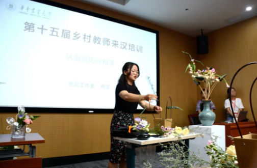 杨雪为第十五届来汉培训乡村教师开展插花体验指导