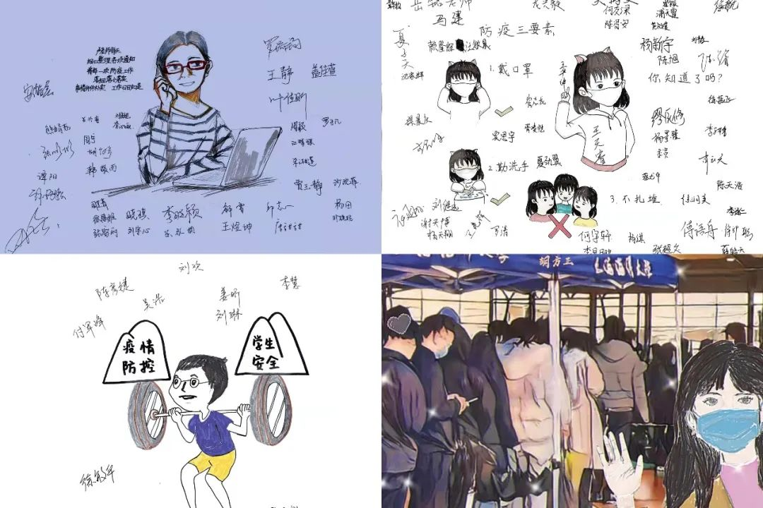 最温情不过传递指尖的温度,同学们给自己的辅导员创作画像并签名,通过藏头诗、场景复原等形式回顾最近发生的小故事,表达对老师们的感谢与爱。