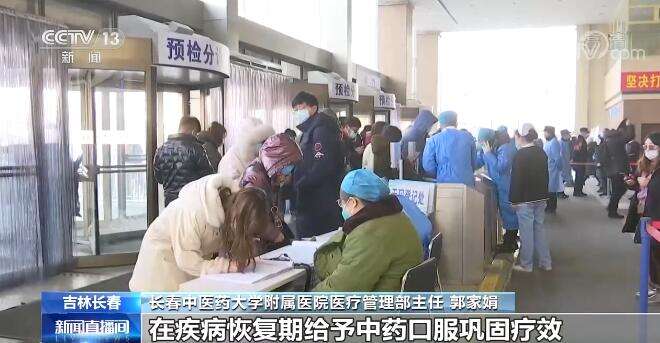 长春中医药大学附属医院医疗管理部主任 郭家娟:针对轻型、普通型患者采用分层用药,重症患者提供“一人一方、一人一策”精准治疗。在疾病恢复期给予中药口服巩固疗效,截止到4月9日,已发放中药5303713人份,覆盖1589399人。