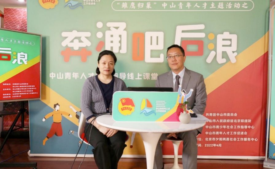 为吸引更多优秀青年学子到中山就业创业,助力中山经济社会高质量发展,4月12日共青团中山市委员会联合市驻京联络处在北京开展“雏鹰归巢”青年人才主题活动——“奔涌吧后浪”中山青年人才就业指导线上直播课堂。市驻京联络处谢力主任亲临直播间进行中山城市推介,北京邮电大学学生处就业与创业指导中心周秋红老师线上授课,在京津冀地区就读的中山学子等2000多名青年大学生通过线上平台观看学习,并与专家嘉宾在线互动。本次活动由中山市青少年社会工作指导中心、中山市青年人才工作促进会主办。
