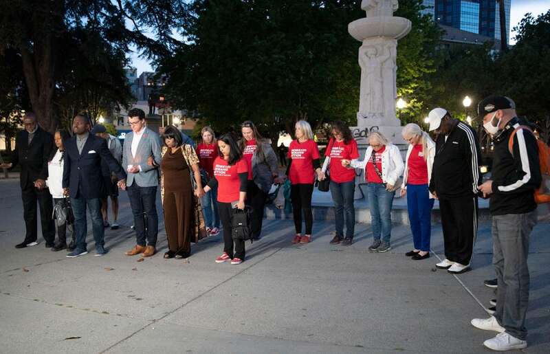 4月3日,人们聚集在美国加利福尼亚州首府萨克拉门托市中心的一处公园里参加守夜活动,悼念当天发生的枪击事件遇难者。新华社发(李建国摄)