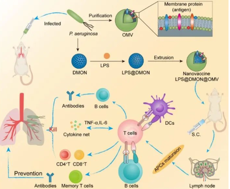 图1 细菌外膜囊泡包裹的纳米疫苗调控抗菌免疫的示意图