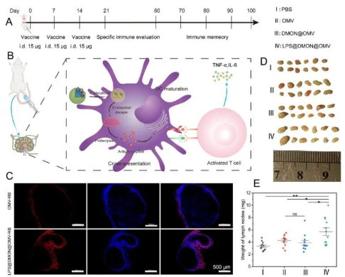 图2 LPS@DMON@OMV纳米疫苗的活体免疫评价