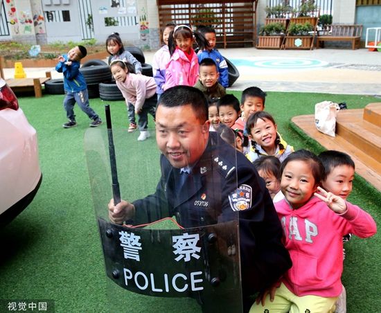 2022年4月14日,陕西省西安市,4.15是全民国家安全日, 西安民警走进辖区幼儿园 ,给小朋友进行安全教育, 对老师家长进行预防电信诈骗宣传。