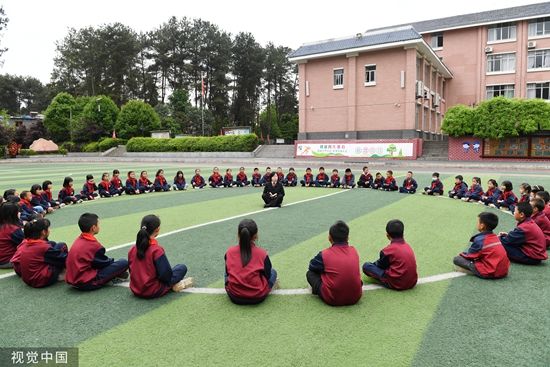 2022年4月14日,贵州省仁怀市鲁班二小,法官为学生讲解全民国家安全教育日相关知识。