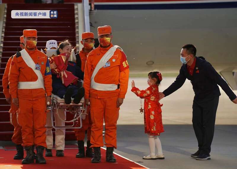神十三航天员抵达北京,王亚平下飞机后,她的女儿手捧鲜花迎接她,王亚平立刻掏出“星星”,笑着递给女儿。