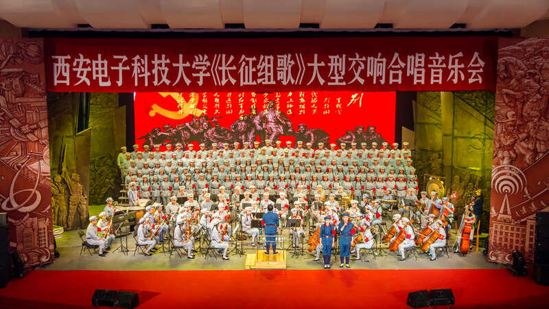 “红旗飘,军号响,子弟兵,别故乡……”2015年1月,作为西电首部校园文化精品,历时半年打造的“西电版”《长征组歌》在西安公演,一场演出赢得了60余次雷动掌声。
