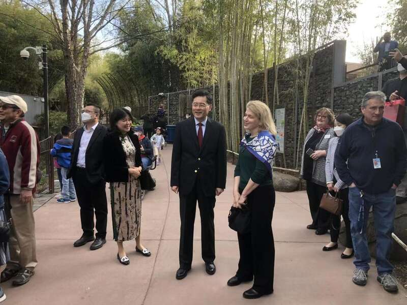 当地时间4月16日,美国国家动物园在大熊猫馆举行大熊猫抵美50周年庆祝活动,中国驻美大使秦刚出席活动,参观了大熊猫馆,看望了在馆的大熊猫“美香”“添添”和“小奇迹”,并向媒体发表致辞。