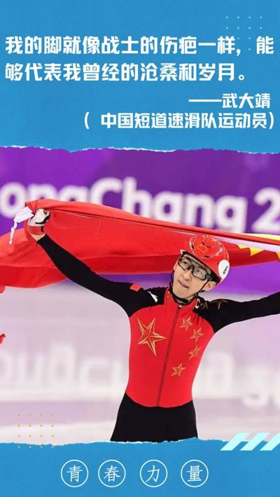 大家好,我是中国短道速滑队运动员武大靖。很高兴今天参加由中国青年报社主办的中国青年冬奥精神会。4月8日,在北京冬奥会、冬残奥会表彰大会上,习近平总书记对北京冬奥精神作出了20个字的总结,即:胸怀大局、自信开放、迎难而上、追求卓越、共创未来。