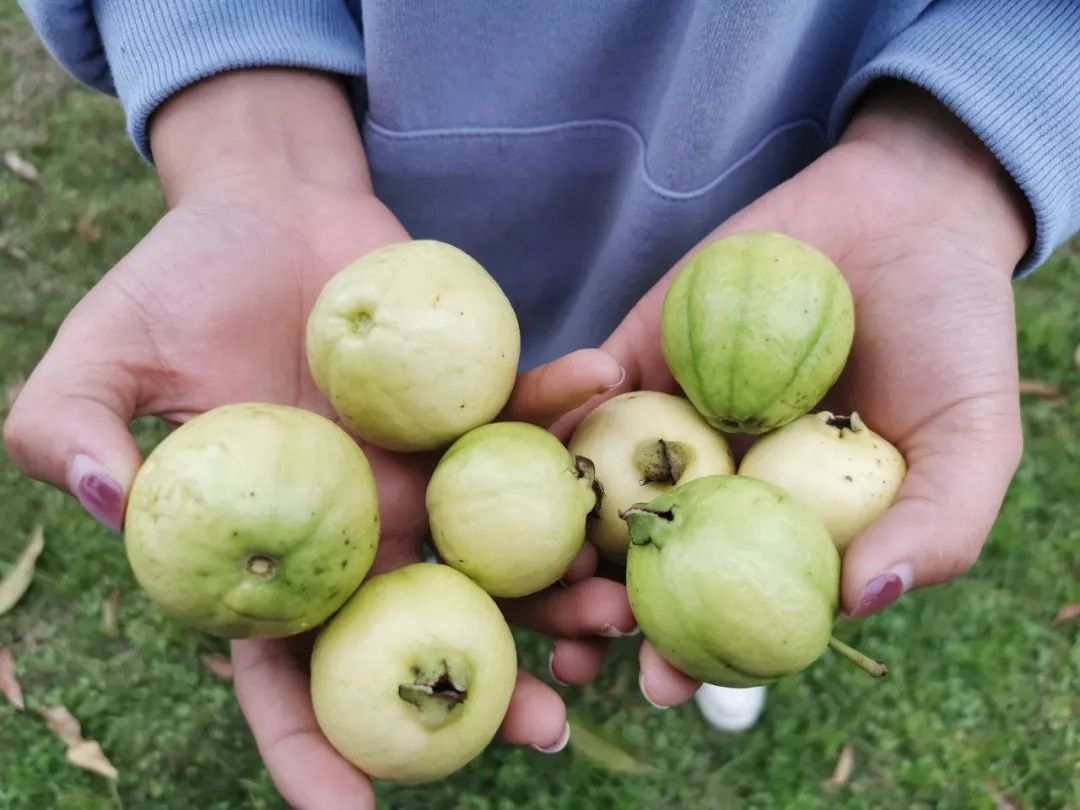前些日子接连几天的雨把我牢牢限制在了宿舍里,因为最近事情很多,加上突如其来的疫情防控总有一点不适应,让我的心情都变得有些差。不过好在太阳总会出现,生活也总有惊喜发生。这天我和朋友舍友吃完饭路过桃李园,想起桃苑附近有芭乐树,互相对视一眼便心领神会,一起向芭乐园进发。芭乐树很高,我们就另辟蹊径,把带来的伞撑开,用伞顶钩住树枝将它稍微压下一点,手再把树枝往下压,然后另一只手去摘。就这样,美味的芭乐到手了。回寝之后我们吃了摘回来的芭乐,是那种软芭乐,很甜,里面的心也是甜甜的。