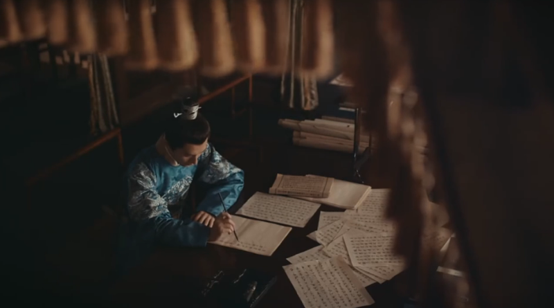 成毅饰演的少年朱棣在抄写《魏武三诏令》。《山河月明》剧照
