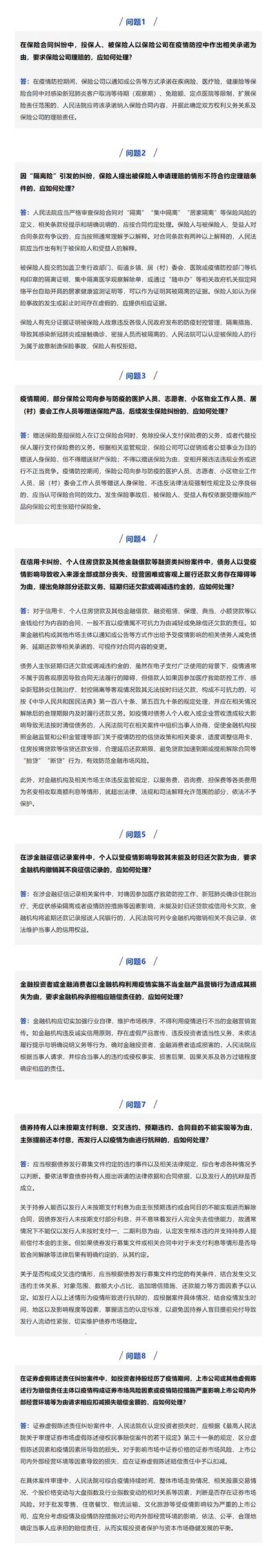 4月18日,上海市高级人民法院针对涉疫情金融纠纷案件相关的8个热点法律问题进行了详细解答。具体如下: