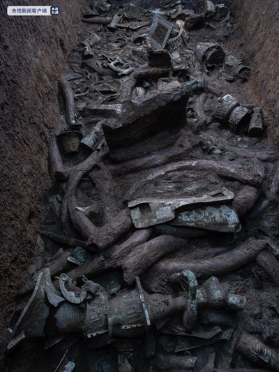 △三星堆遗址祭祀区考古发掘现场(3号坑)