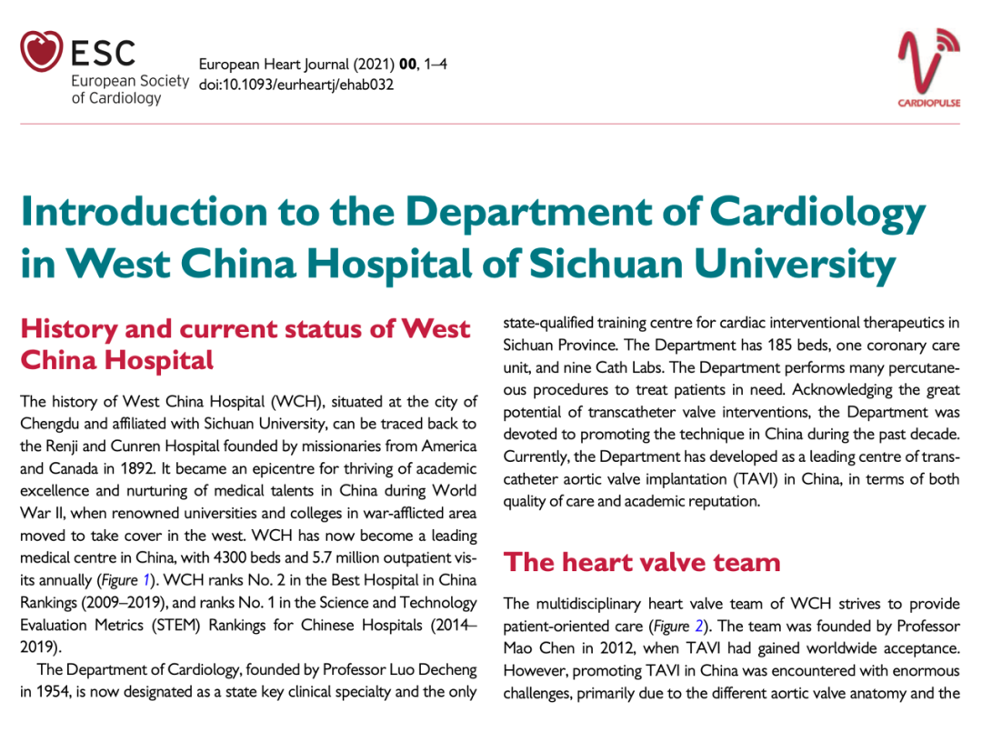 鉴于团队在经导管心脏瓣膜病介入治疗领域的突出贡献,心血管领域顶级期刊《欧洲心脏病学杂志》(European Heart Journal)于2021年2月在CardioPulse专栏刊文介绍了陈茂教授团队的工作。