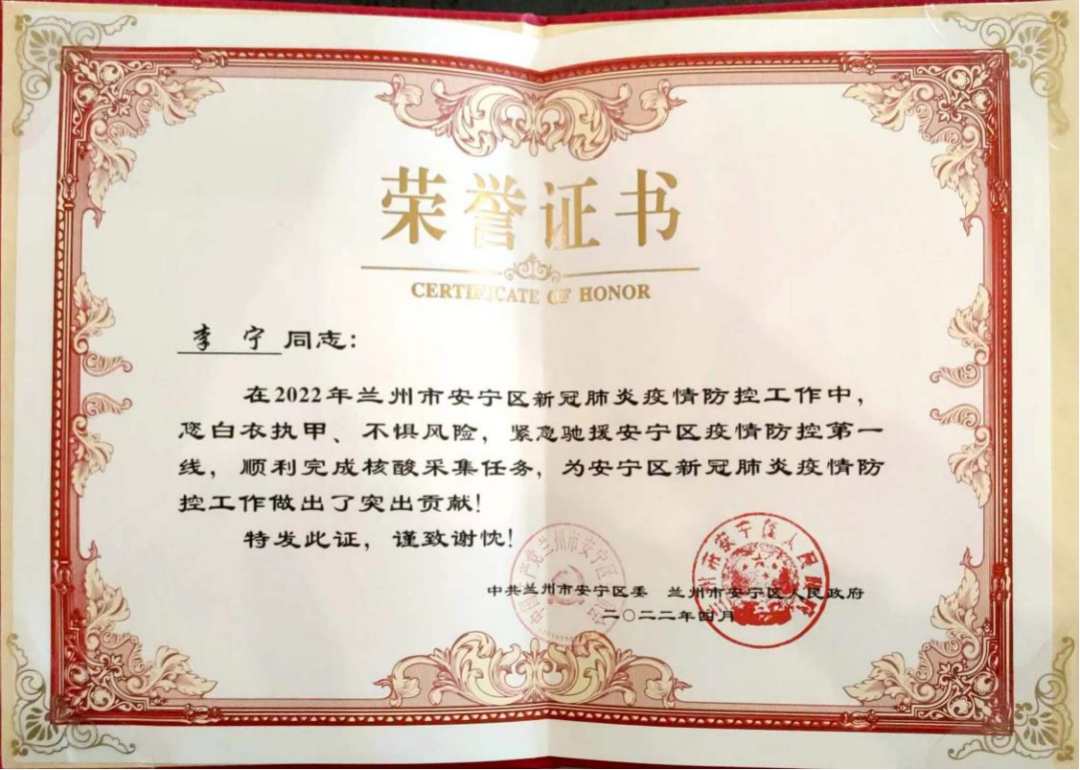 李宁也获得了区政府的荣誉表彰