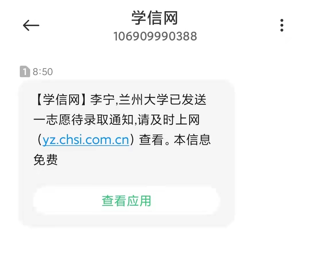 李宁收到了兰州大学的拟录取通知