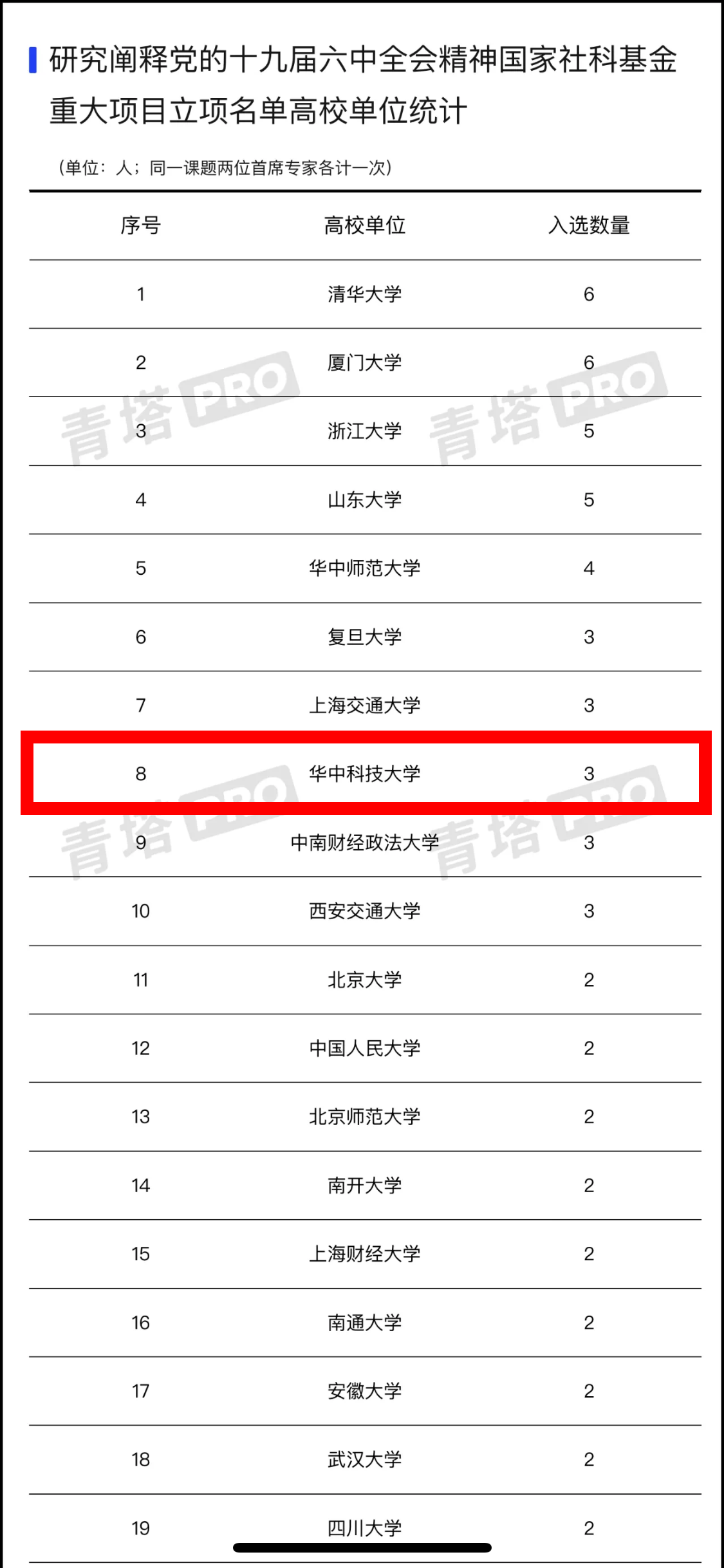 华中科技大学3个课题获批立项,立项数位居全国高校并列第四。