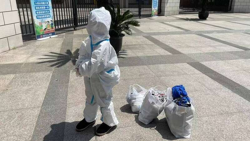 第二天一早,我穿好防护服,又随身带了一套防护服,到公寓里找到小朋友。“大白叔叔来接你到爸爸那里去。”我说着,把随身带的防护服临时改一改,用夹子夹住长出来的部分,帮小男孩穿上。我背上他的全部行李,一大一小就出发了。