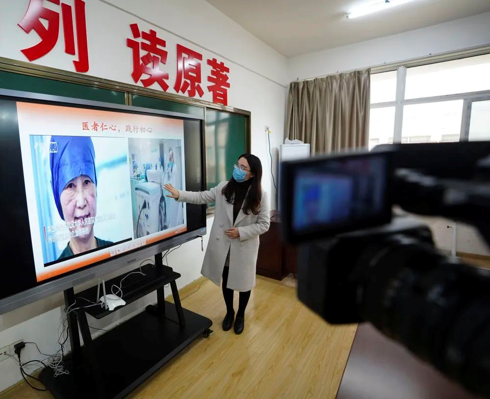 2020年3月17日,江西南昌豫章师范学院思政课教师通过互联网给学生们上课。