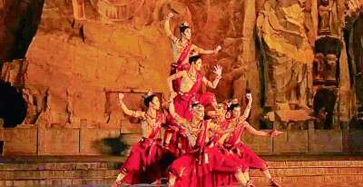 从中华优秀传统文化中寻找艺术基因和创作灵感的文艺佳作不断涌现,一部部舞台表演艺术作品“破圈”而来,精彩纷呈。河南卫视2021年七夕节制作的《七夕奇妙游》中以龙门石窟石刻图像飞天和金刚为素材编创的实景舞蹈《龙门金刚》,就是其中的杰作之一。怀抱乐器的伎乐天从洞窟中飞出,在大佛的注视下翩翩起舞,金刚力士形象逼真、栩栩如生。艺术家赋予传统文化遗存跨越历史的艺术魅力。古风豫韵舞蹈艺术与龙门石窟悠久的历史文化相得益彰,将“文化+旅游”的精髓和深意作了深刻的演绎和阐释。