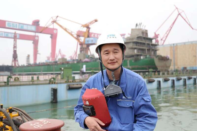 中国青年报客户端讯 (中青报•中青网记者 吴晓东)40多度的高温下,身穿严实的工作服,脚踩厚重的钢头皮鞋,一手拿面罩,一手提电焊枪,耳边呲呲作响,眼前火光四溅。这是2022年全国五一劳动奖章获得者、中国船舶集团广船国际有限公司总装部搭载课船舶电焊工、高级技师冯文虎的工作日常。