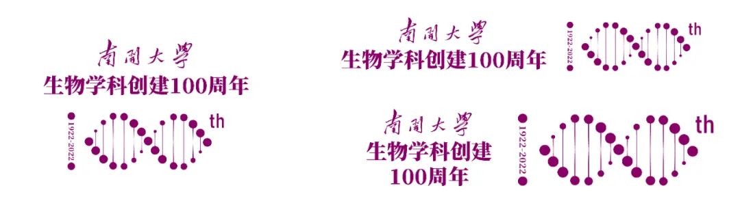 南开大学生物学科百年庆LOGO,以生物学科极具代表性的“DNA拓扑结构”和“年份数字”作为标志性元素组合而成。用年份跨越数字加入DNA链状结构的演变形成了数字“1”,用“DNA双螺旋结构”平面化演变成数字“0”,完成了数字“100”的图形演变过程。