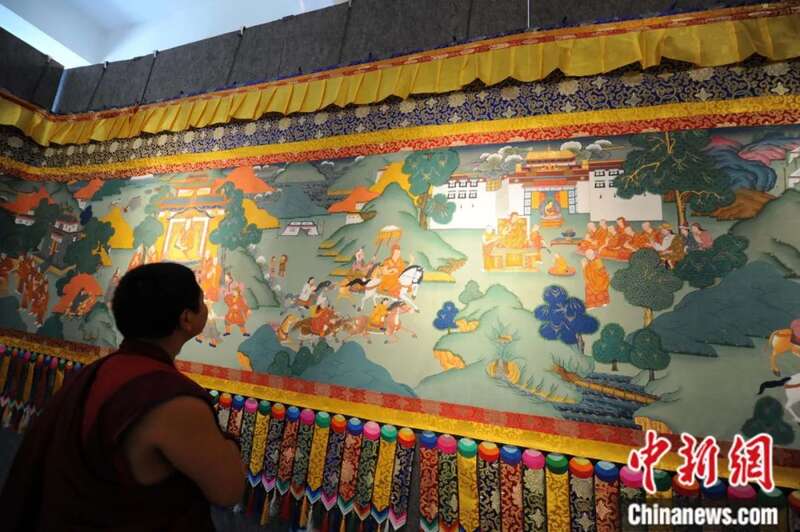 大型历史题材卷轴唐卡《凉州会盟》。中新社记者 杨艳敏 摄