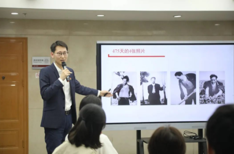 马克思主义学院党委副书记吴韵曦从焦裕禄同志一生的四个重要选择入手,深入阐发了焦裕禄迎难而上的奋斗精神与扎根一线的求实作风,勉励青年学子不断践行习近平总书记考察法大重要讲话精神,立志为国家、为人民、为社会多做贡献。