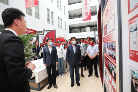5月1日下午,党委书记胡明、校长马怀德、副校长李秀云等校领导与法学院本科生2020级1班团支部成员一起,参观习近平总书记考察中国政法大学五周年成果展。自2017年5月3日习近平总书记考察法大并发表重要讲话以来,中国政法大学全面贯彻落实重要讲话精神,取得了一系列创新性、示范性和标志性成果。一张张图片和一件件证书在灯光下熠熠生辉,吸引着师生们驻足深思。