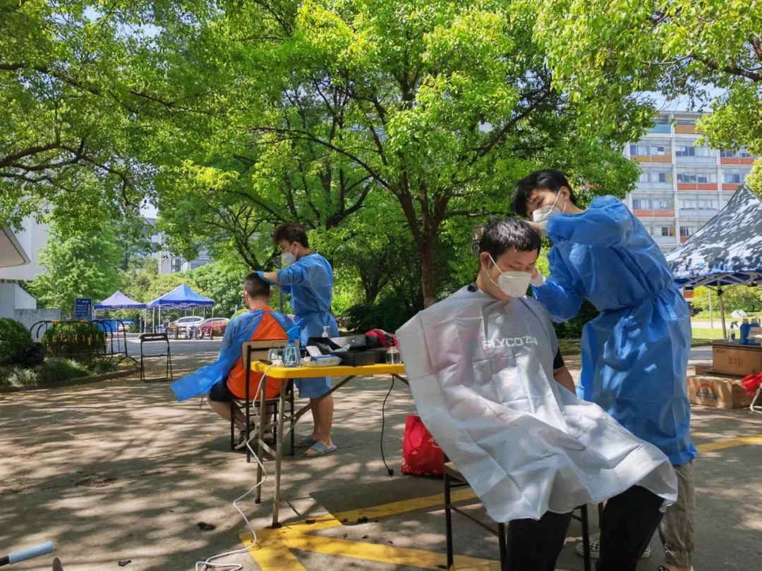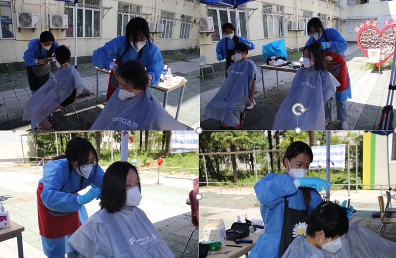男生寸头好剪,女生也想理发怎么办?没问题,理发盒子户外流动站这次也给安排上了。短发修剪,长发剪短,刘海修剪……西北四楼的两位女生化身“托尼老师”,一一满足同学和保洁阿姨的个性化需求。