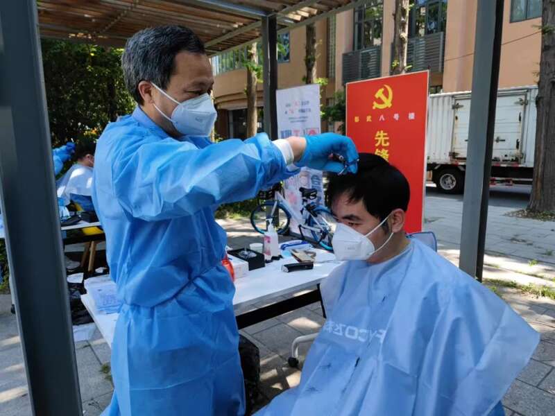 王维栋老师是社区中心四平公寓部南片区的片区长,虽然退伍十几年,但他的理发手艺一点都没有生疏。随着剪刀咔嚓咔嚓运行,碎发在他手中悉悉落下。很快,博士3号楼的袁同学就收获了精神的新发型,“很清爽,非常满意,一点都不输专业理发师。希望疫情也能‘一剪没’。”