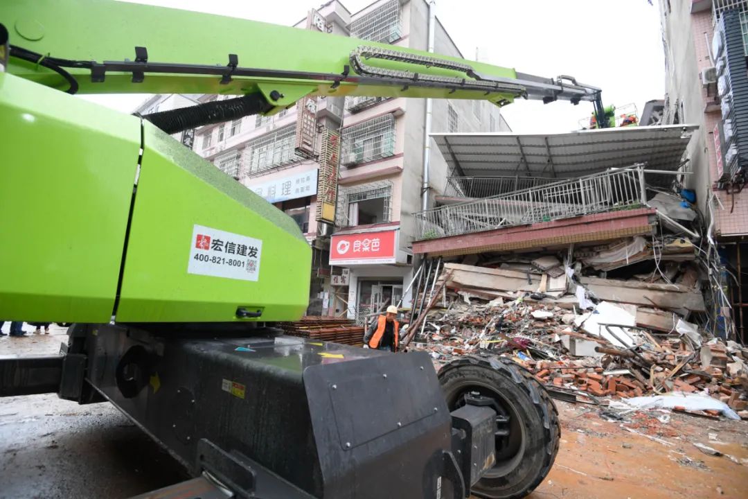 4月30日,工作人员在湖南长沙居民自建房倒塌事故救援现场作业。新华社记者 申宏 摄