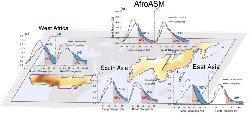 “约束后的预估结果表明,亚非季风区的降水和总径流量增加不像原始结果那么强,但由于总径流量与可用水资源直接相关,这也给水资源管理提出新的问题,特别是在亚非季风区诸多地区观测降水在过去几十年呈现减少趋势的背景下。”论文通讯作者、中科院大气物理研究所研究员周天军说。