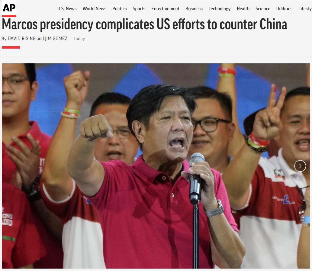 美联社:小马科斯胜选使美国对抗中国的努力复杂化