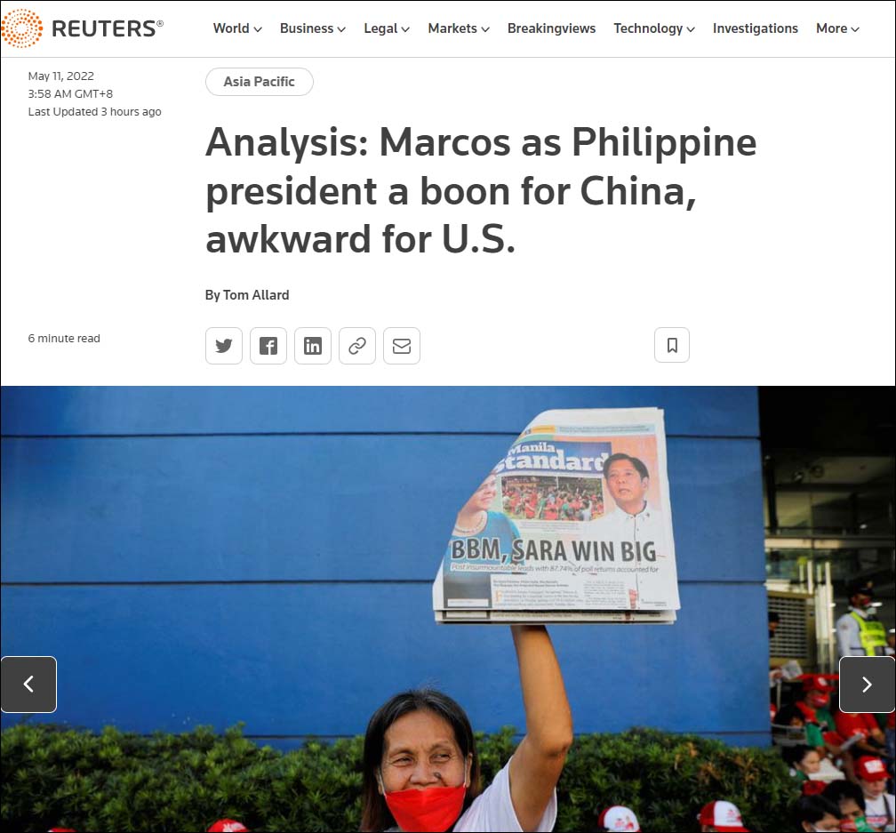 路透社:小马科斯胜选对中国有利,对美国不利