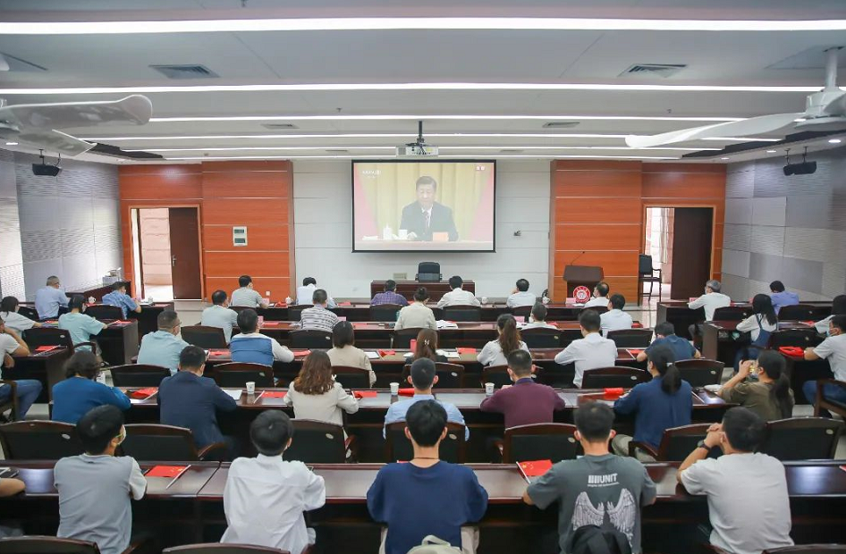 全体校领导、部分职能部门负责人、各学院团委负责人和学生代表在尚大楼108会议室集中收看大会直播,各学院党委书记、副书记、辅导员和学生代表同步收看直播