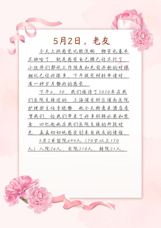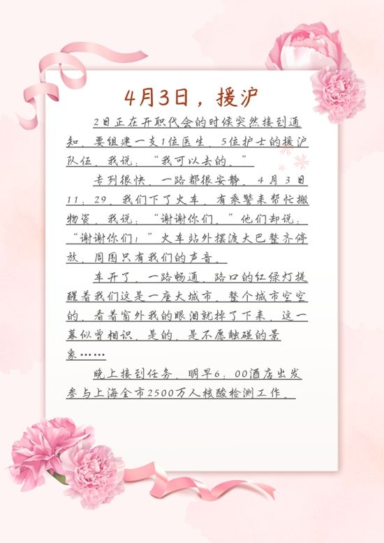 4月3日,作为金银潭医院援沪医疗队的领队,程芳踏上了开往上海的专列,至今,她已经在一线奋战将近四十天。连日来,她记录下了援沪每一天的经历与感动,以下是她的日记节选……