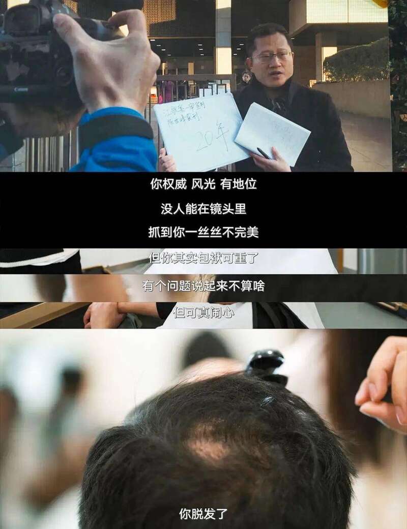 这年头,万物都可纪录片。码农有,电视剧《隐秘的角落》里的“脱发”的张东升也有,属于他们的生活和纪录片。一切从头开始,这个时代审美挺无情,秃顶和啤酒肚、肥胖等一起跻身颜值焦虑行列。“一个脱发题材,做着做着,头竟然真的要秃了。”热播纪录片《秃然发生》以“男性脱发”这一社会议题,戳中网友。画外音凸显的女性视角,男记者在其中既是脱发的当事人,同时也是纪录片的创作者,去寻访全国各地备受脱发困扰的男发友们,和它背后的产业,更探讨在社会观念裹挟下的自我认知。