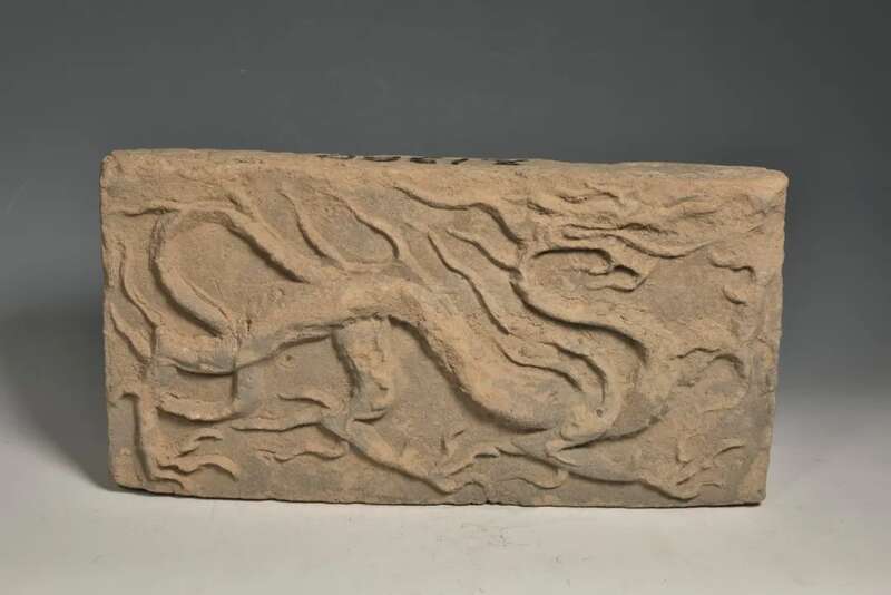 敦煌三危山老君堂出土。长51厘米,宽25.5厘米,厚9厘米。砖上的龙依砖造型,身躯较短,前曲后伸,张牙舞爪,表现奔驰的动态。爪、尾的动势强劲有利,线条概括简练。