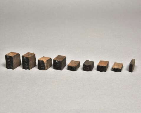 莫高窟北区B59窟、北区B160窟、北区B163窟及第464窟等6个洞窟共计发现了回鹘文木活字48枚。在这些木活字之中,有名词、动词词干、词缀、字母、不表示词义或语法组合、标点符号、版框线和夹条。这组回鹘文木活字质地和形制构成完全相同,尺寸依所表示符号的繁简而定。因每枚木活字表面均有墨迹,说明曾经被使用过。