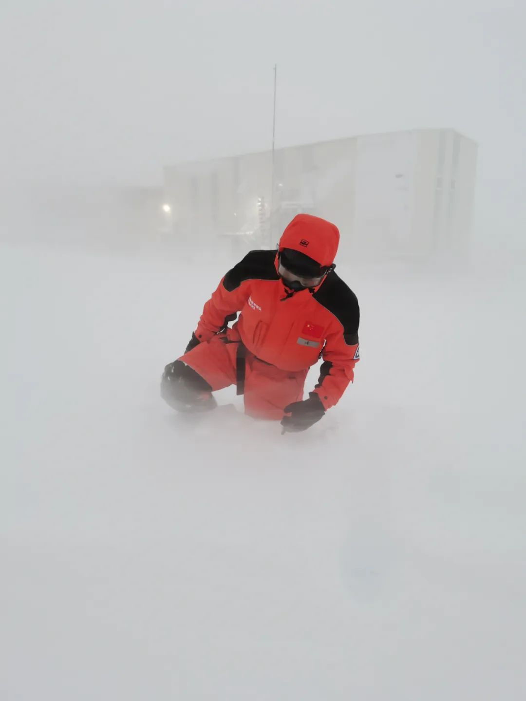 “只要没有遇到无法出门的极度恶劣天气,再大的风雪也要坚持出门观测。”据凌新锋的观测,南极8级以上大风一年就有170多天。大气成分观测区域处于无人区,要走二三十分钟路才能到达。遇到暴风雪时只能沿着安全绳走,清除积雪检查仪器。“去的时候被风吹过去,回来的时候就爬着回。”他开玩笑地说。