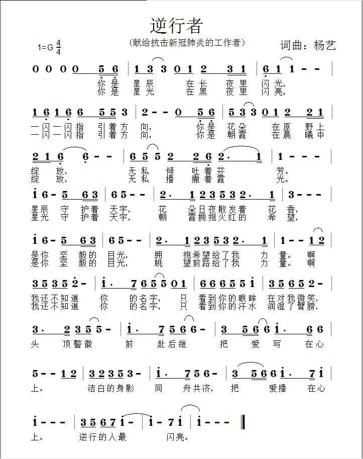 原创歌曲《逆行者》简谱