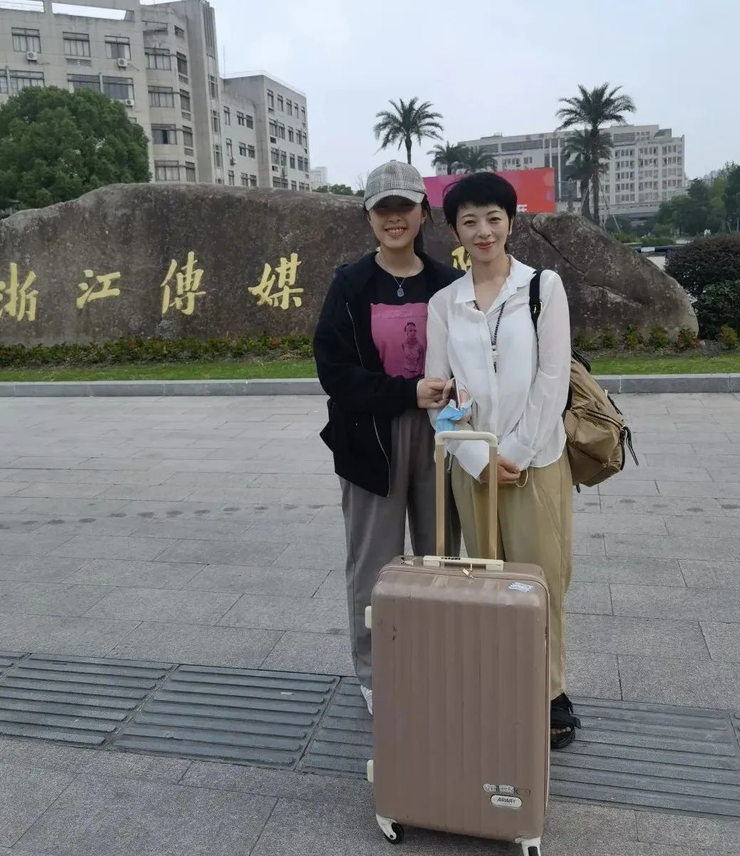 去年9月10日,几乎全年无休的妈妈特意请了假,陪张一佳来学校报到,母女俩还站在校门前拍了一张合影,她就这样带着妈妈的爱和自己的梦迈进了浙传的大门。