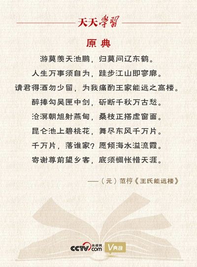 《王氏能远楼》是“元诗四大家”之一范梈所作的一首歌行体古诗。全诗立意高远,境界开阔,借与友人登楼畅饮,抒发了对人生变幻无常的感慨,表达了作者乐观、旷达的生活态度。全诗共十六句,每四句为一意。
