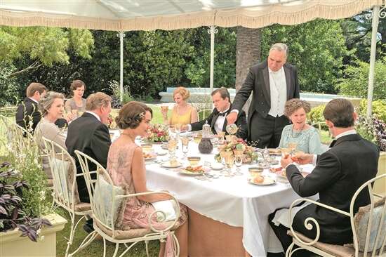 《唐顿庄园》剧集版的背景设定在1910年代英王乔治五世在位时,但在《唐顿庄园2》里,“大当家”已经换人,玛丽小姐本人也已经走过懵懂的少女时代,经历了丧夫又再婚。片中一个细节或能提供该片更为精确的时代背景:来唐顿拍电影的导演邀请玛丽去看电影,两人无意中发现有一部叫《爵士歌王》的电影很卖座。这部《爵士歌王》并非虚构,它是人类历史上第一部有声电影。这部爱情歌舞片由艾伦·克罗斯兰执导,阿尔乔生、梅·麦卡沃伊、华纳·欧兰德等主演,在1927年上映——这应该是《唐顿庄园2》故事发生的年代背景。在故事里,导演原本拍到一半的电影,因为这部《爵士歌王》的走红而被叫停。虽然导演不服地表示,这部所谓的“有声电影”里并没有几句对白,而且效果也不好,但在包括他在内的不少电影人还没有意识到的情况下,默片时代确实就这么突然地宣告结束了。在《唐顿庄园2》的最后,仆人们因剧组缺群众演员而坐上了他们服务了一辈子的主餐桌,当上了“老爷太太”,而伯爵等人则在镜头外笑眯眯地看着他们。“楼上”“楼下”分隔不再,这一幕有趣而温馨。但对于银幕外的观众来说,若考虑到《唐顿庄园2》的故事没过几年就将爆发二战,或许会更加感慨这世界变化之快之巨。