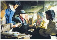 孟师傅和我在上部电影合作过,甘肃人,技术特好。阿里平均海拔4500米,极度缺氧,面积相当于两个山东。我们走的是阿里中线,过了日喀则全是沙土路,车过之处尘土飞扬。最困难的一段是1700多公里的荒滩戈壁,就是常说的无人区。在阿里这条路上跑车,司机有个不成文的约定:看见有车抛锚都要停车相助。我们在路上还真碰到了抛锚的汽车,陷入困境的藏族司机像遇见救星直呼:扎西德勒(藏语吉祥如意的意思)。我们留给他足够的水和食物,孟师傅贡献出仅有的半包烟并答应帮他求援,司机激动得热泪盈眶。夕阳渐渐西沉,我们的车慢慢驶离,司机向我们挥动双臂拼命高喊:扎西德勒。他的身影逐渐变小,最后消失于茫茫戈壁的暮色之中。