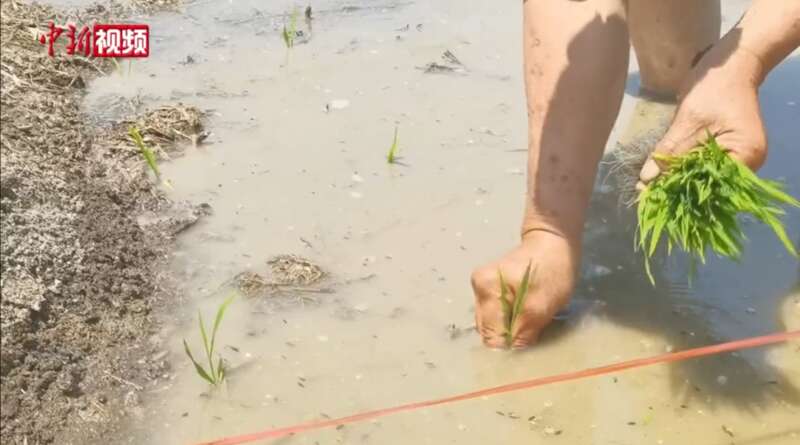 由袁隆平团队培育的超级耐盐碱新型高杆高产“巨型稻”近日在天津市宁河区东白庄鱼场进入插秧阶段这是华北环渤海地区首次在盐碱地上试种非转基因“巨型稻”品种